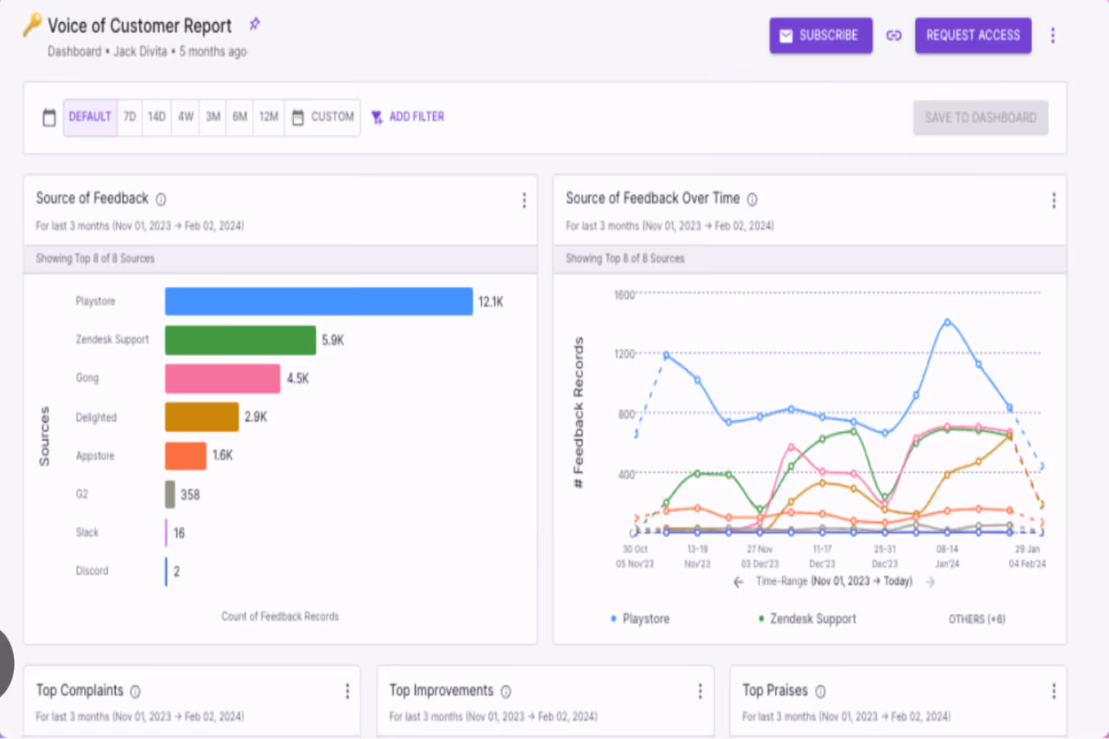 - Unified multi-channel feedback integration consolidating surveys, support tickets, reviews, and social media