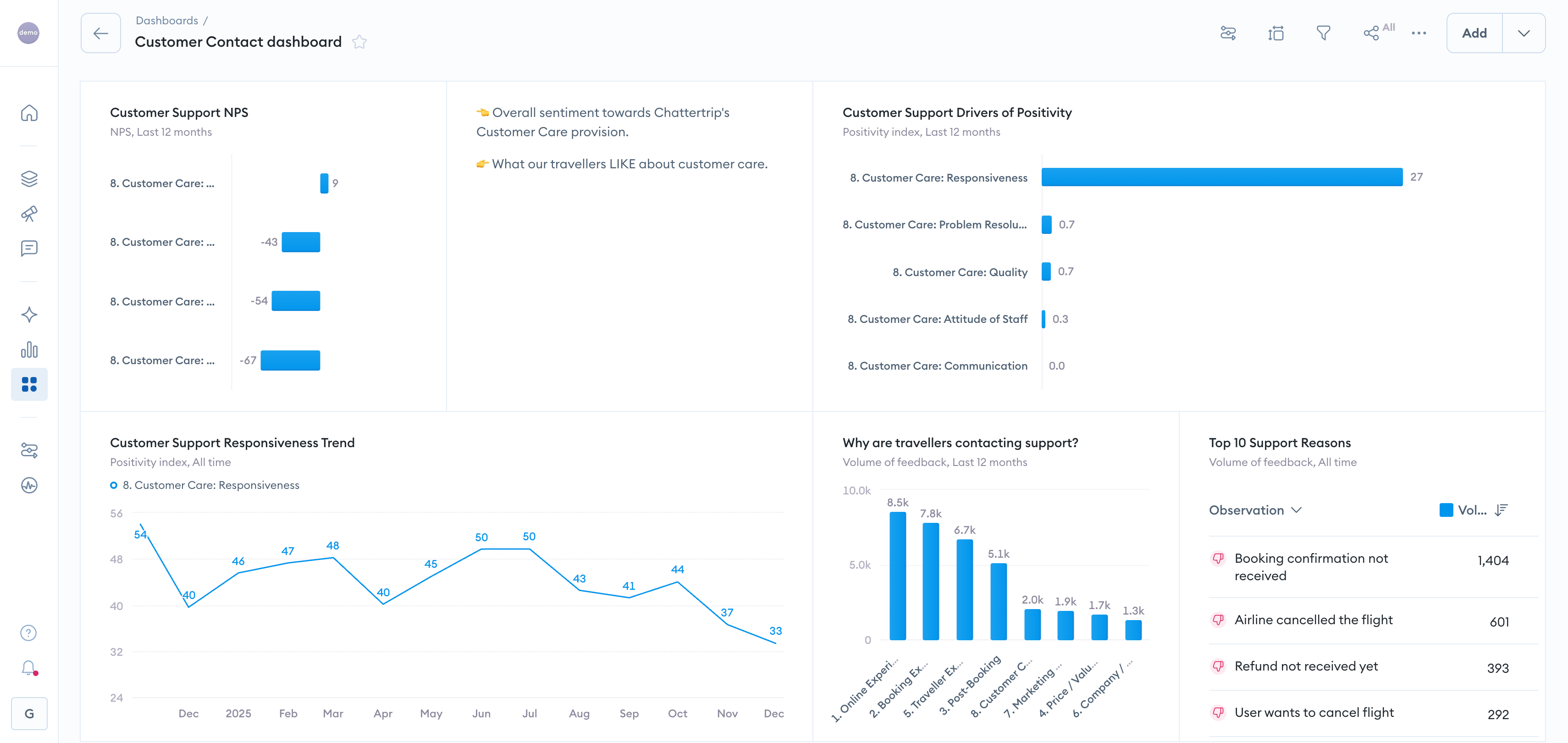 - Experience-Led Growth Hub: Links improvements in sentiment to actual growth metrics, helping you prove the ROI of CX initiatives and connect customer experience directly to business outcomes.