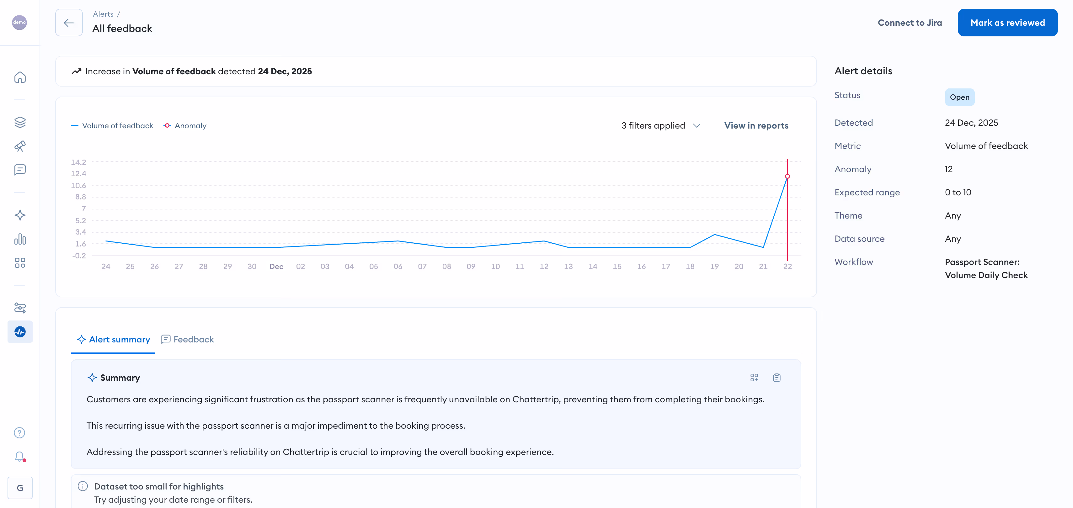 Chattermill provides proactive alerts when sentiment shifts unexpectedly or critical issues emerge. If negative mentions of a specific product feature spike overnight, the platform flags it before the problem compounds.