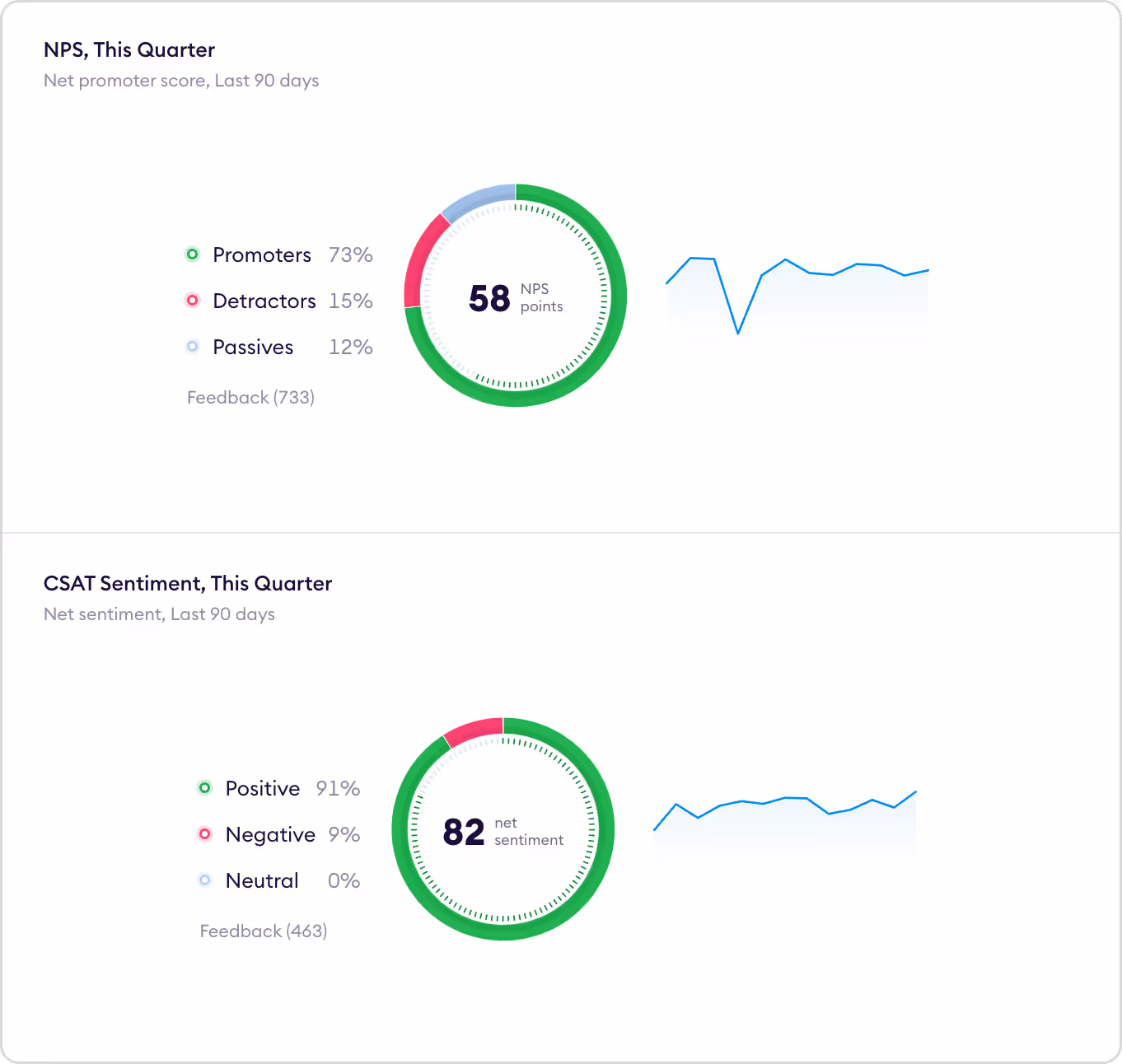 The Net Promoter Score (NPS) and Customer Satisfaction Score (CSAT) are two of the most popular key performance indicators used to track how satisfied your customers are with your products and services. Anything that asks for a rating can contribute to VoC metrics, from post-purchase surveys to app ratings.