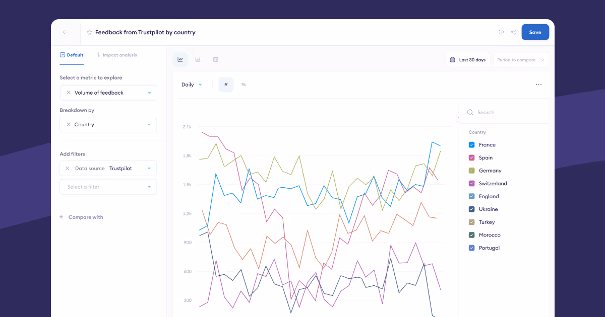 The time comparison window has also been moved to the right-hand side of the reports view for easier access. You can log into Chattermill to start using the new reports view today.