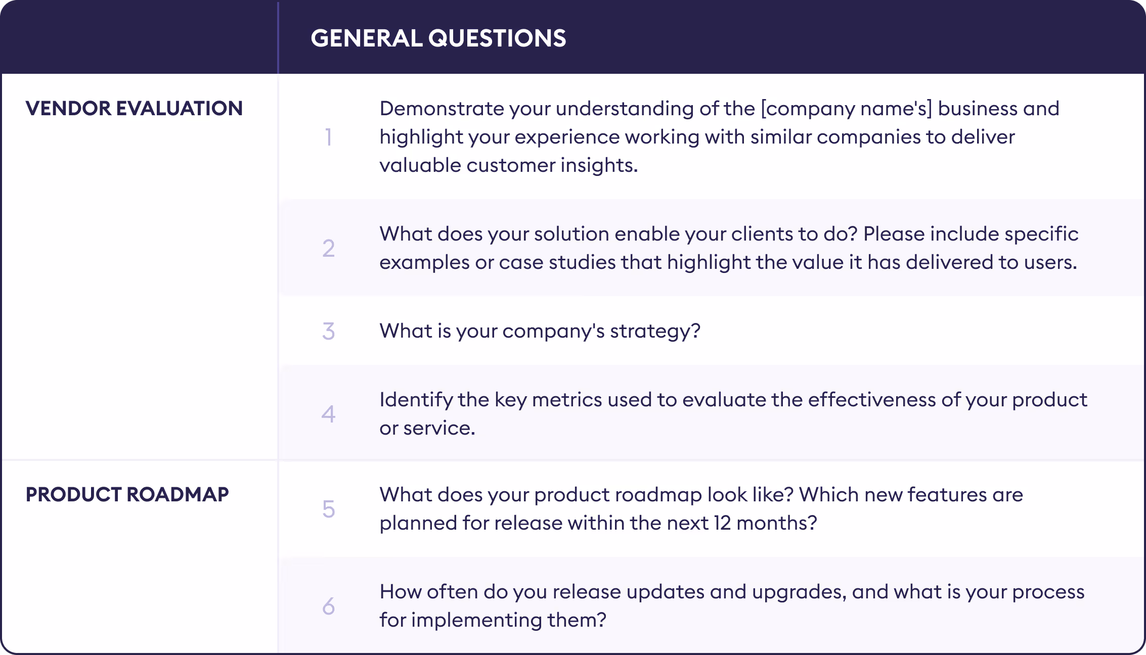 Here is a general outline of questions about features and capabilities to consider during your evaluation. To edit it or create your own checklist, download our RFP template.