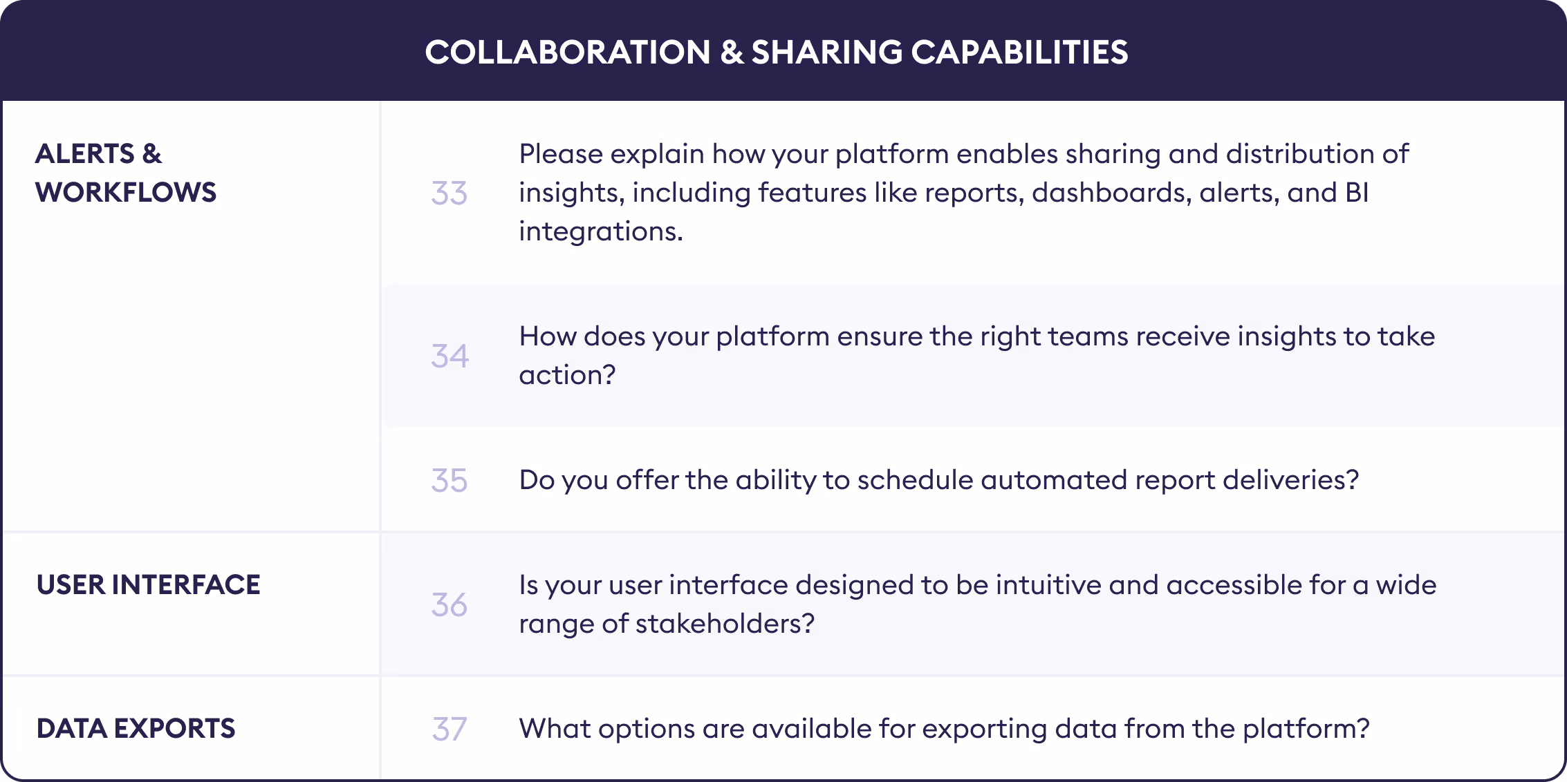 Find out if your vendor has a dedicated insights team that can periodically dive deep into your data. Look for vendors offering on-demand analysis services beyond standard reports - bringing fresh perspectives and advanced expertise to uncover hidden opportunities or risks your internal teams might overlook.