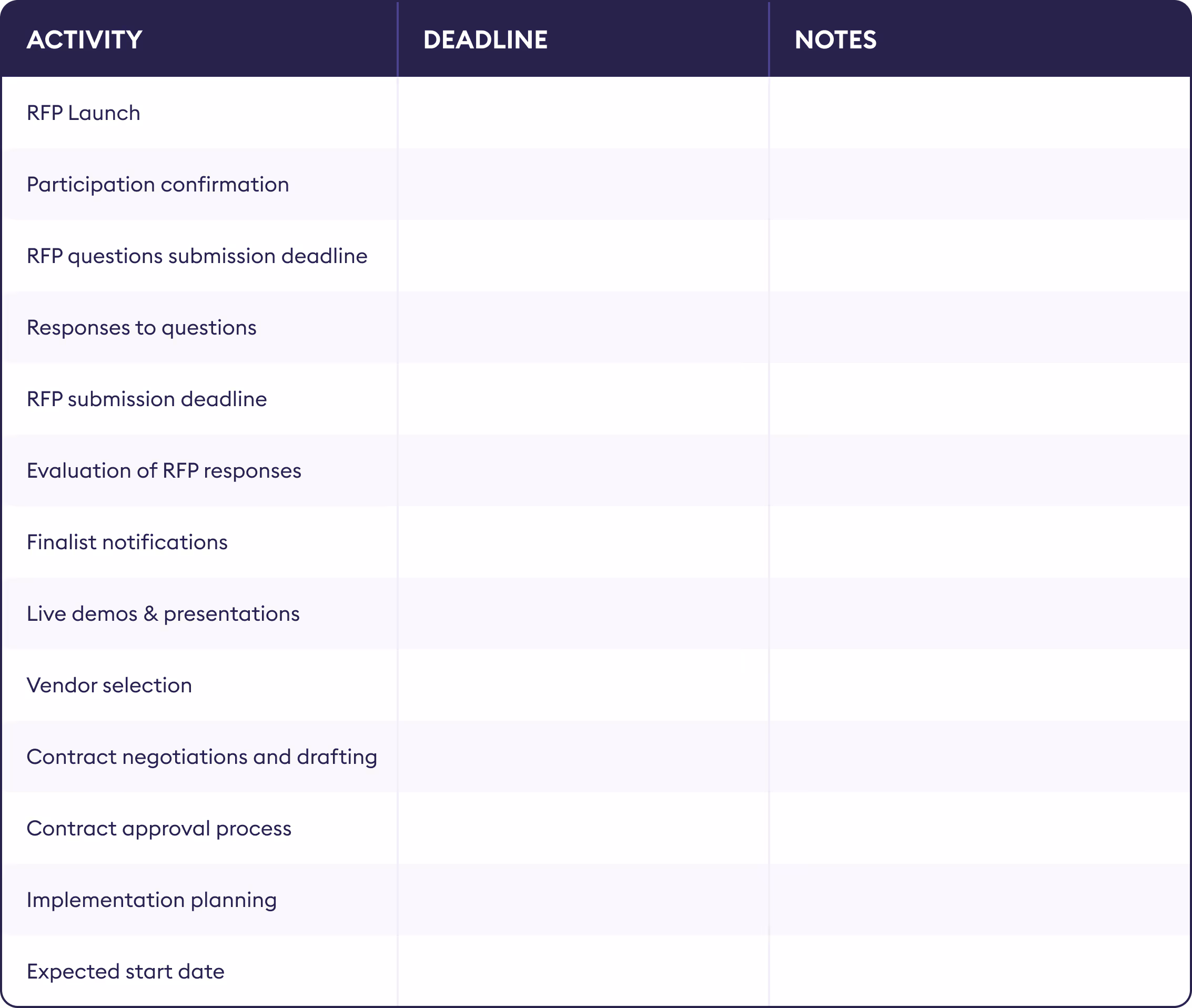 Here’s a clear and concise example timeline you can include in your RFP process: