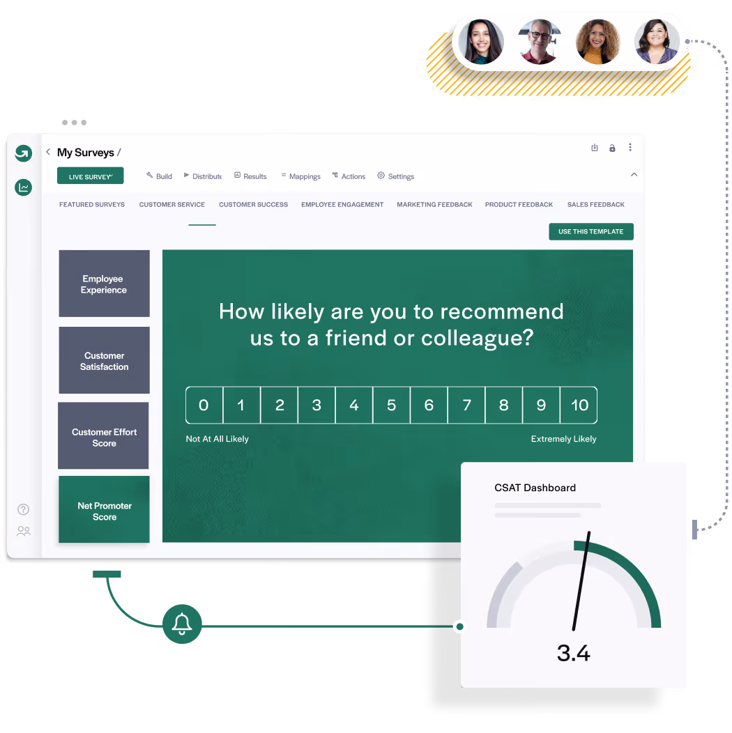 GetFeedback is a Salesforce-native CX platform. It integrates seamlessly with Salesforce workflows to automate survey distribution, map feedback to customer records, and calculate key metrics such as NPS, CES, and CSAT.