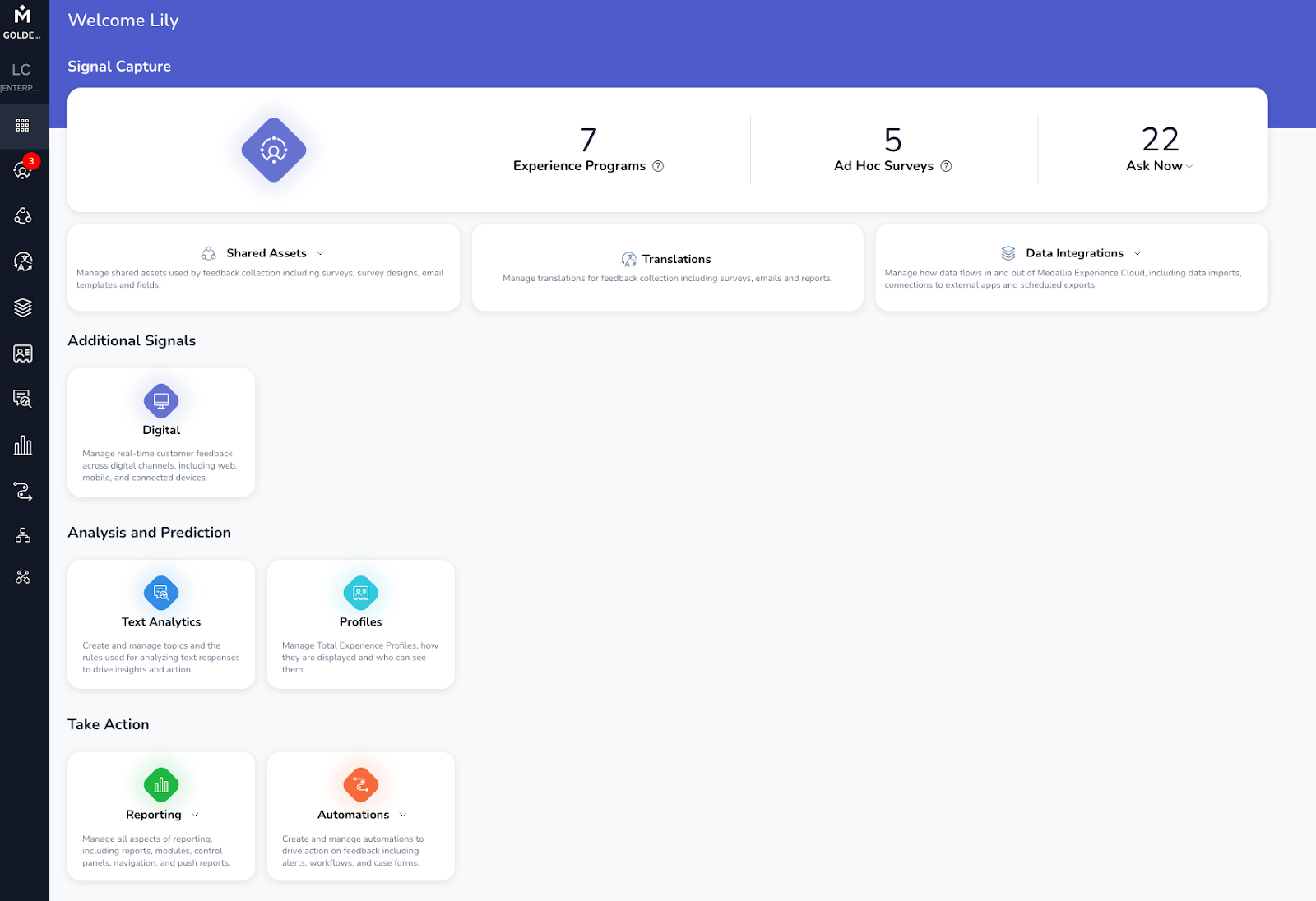 - Enterprise Survey Management: With Medallia, you can collect structured feedback globally across customer touchpoints.