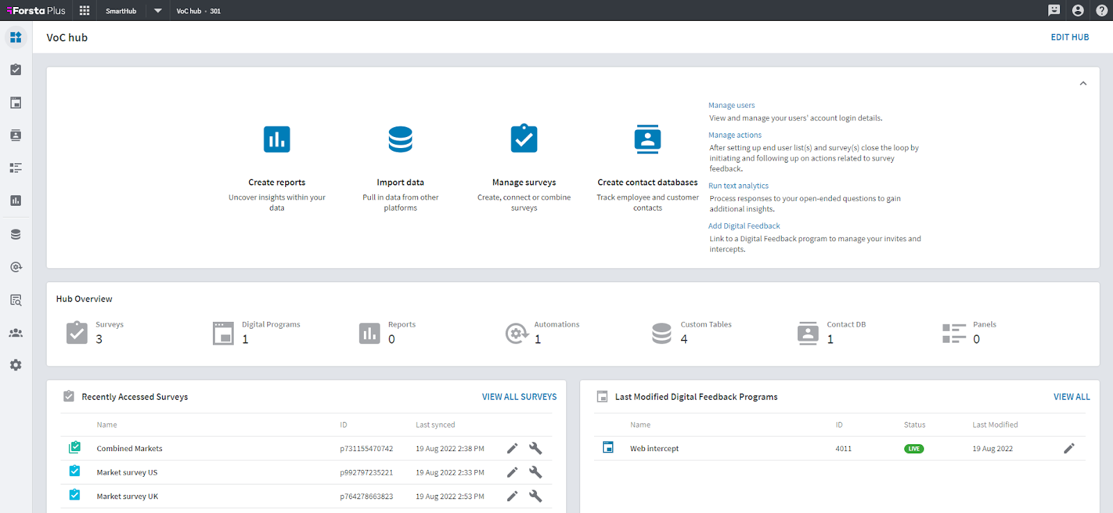 Next up is Forsta, a research-led CX and VoC platform. It’s specially built for advanced survey research and analytics. Its Human Experience (HX) platform helps organizations improve customer, employee, and patient engagement by turning feedback into actionable insights.