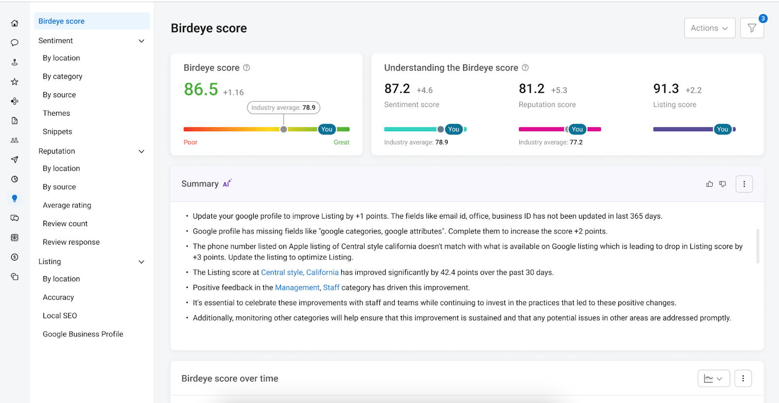 - Sentiment Tracking: Birdeye consistently monitors customer perception trends over time.