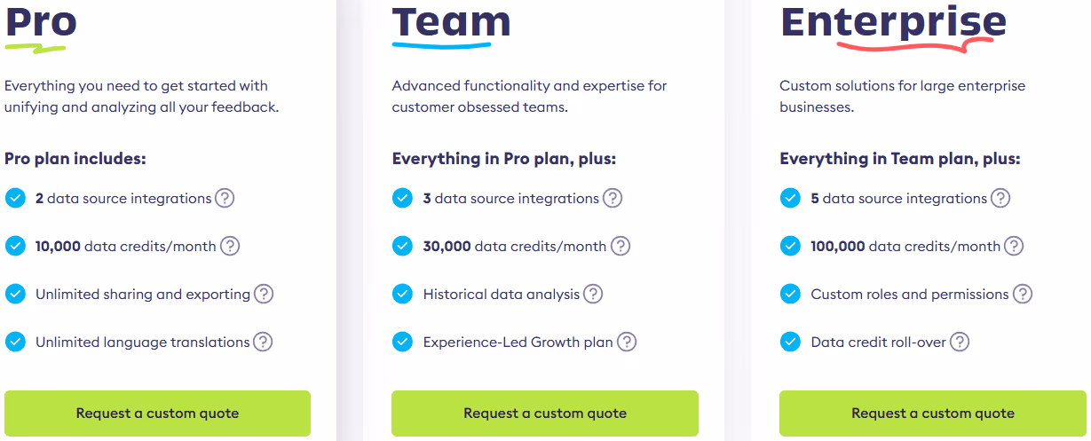 Chattermill plans are priced based on feedback volume, channels, and use cases. However, the average contract value is $100,000. For more precise figures, visit the platform's website to schedule a pricing call.