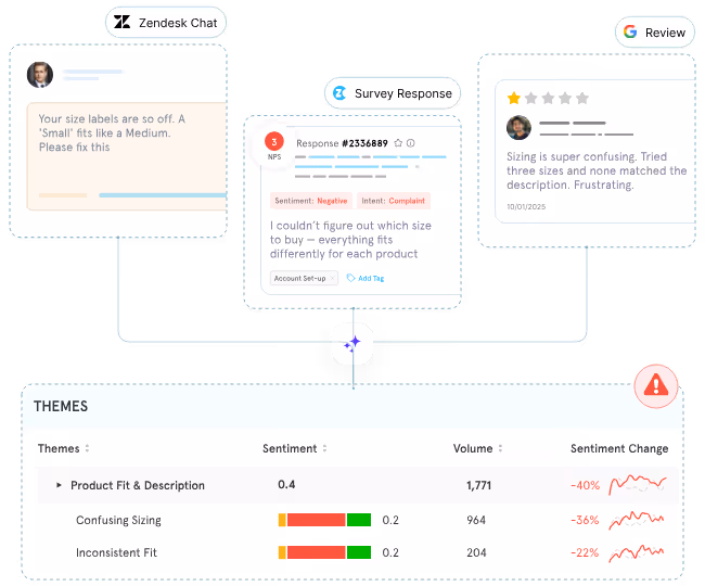 For teams exploring InMoment alternatives, the biggest gap is often understanding why customers feel the way they do. Many tools capture feedback but struggle to unify sources or adequately explain root causes. Chattermill brings surveys, tickets, reviews, and calls together, using advanced AI to surface what matters most and quantify business impact.