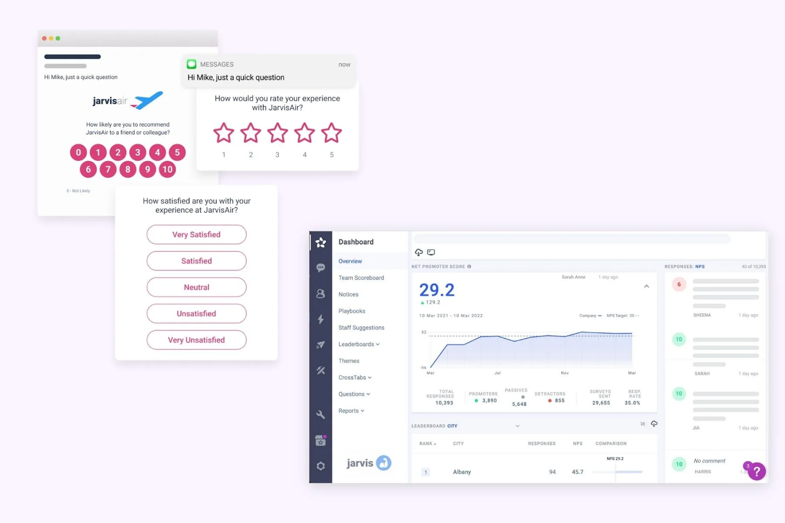 - Feedback collection: Capture customer views across email, SMS, in-app, and more.