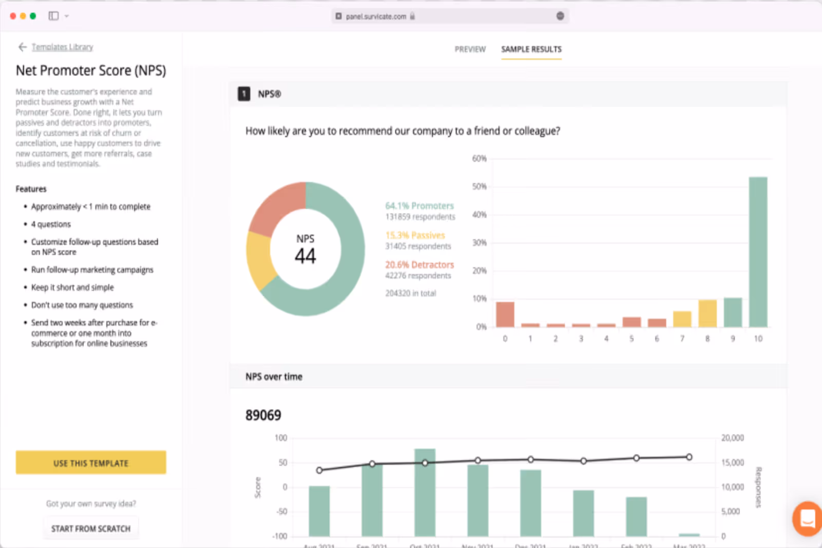 - Prebuilt Templates: Measure product satisfaction, loyalty, and feature prioritization
