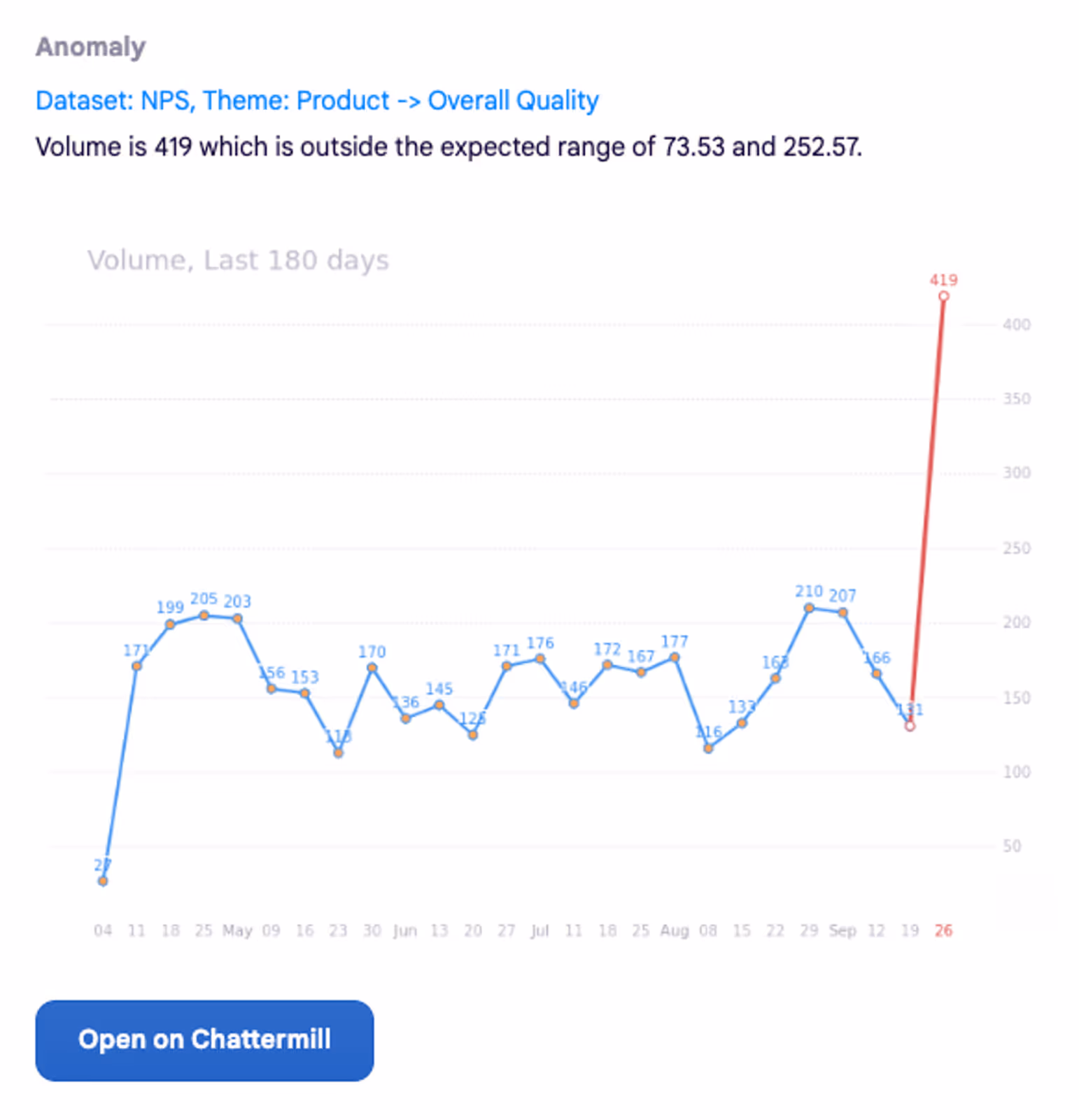 That's why at Chattermill, you now have different ways to keep your team informed. With our latest features, you can easily share insights with your team, trigger regular updates to your executives, and keep everyone on the same page.