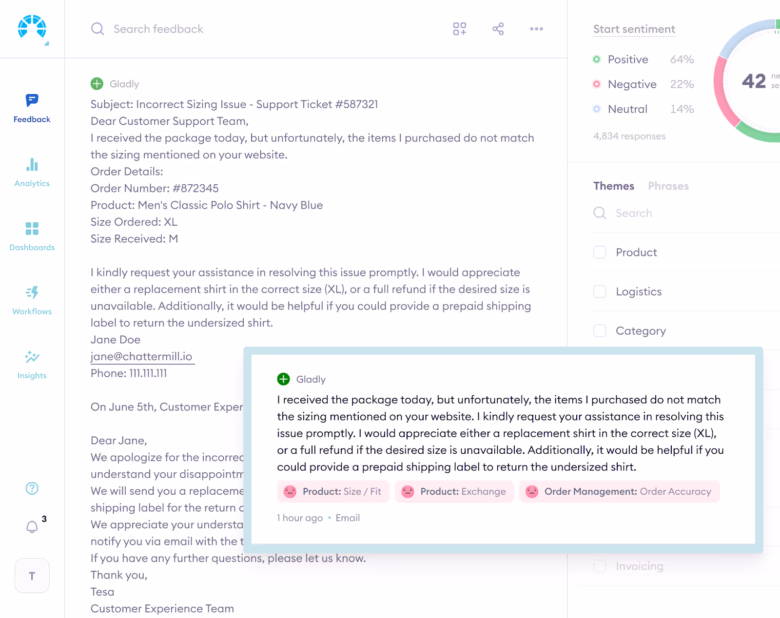 With Chattermill, your support data will now be automatically cleaned and perfectly organised from day one. Navigating, searching, and extracting relevant information will become easier as you enjoy a streamlined and clean data set without inconsistent formatting.