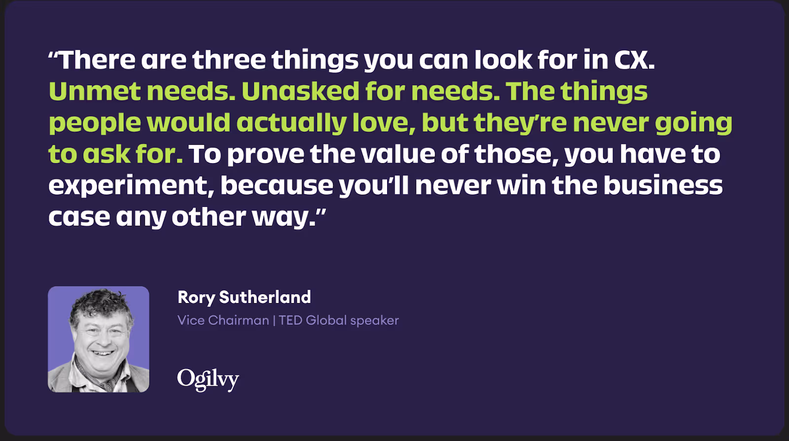 Rory Sutherland gave a keynote on how to “Find the Magic in Your Customer’s Weirdness”, challenging the belief that customers know what they want and can say in advance what a good quality experience is. He shared his view that it’s the things that customers aren’t expecting that really stick in their memories.