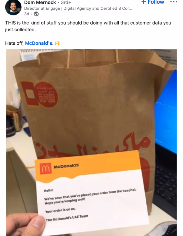 Hats off to this McDonald’s branch in the UAE, who used their customer data to deliver a caring message.
