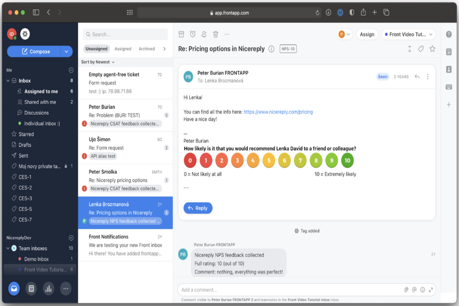 - Built-in post-ticket CSAT surveys and agent performance reporting