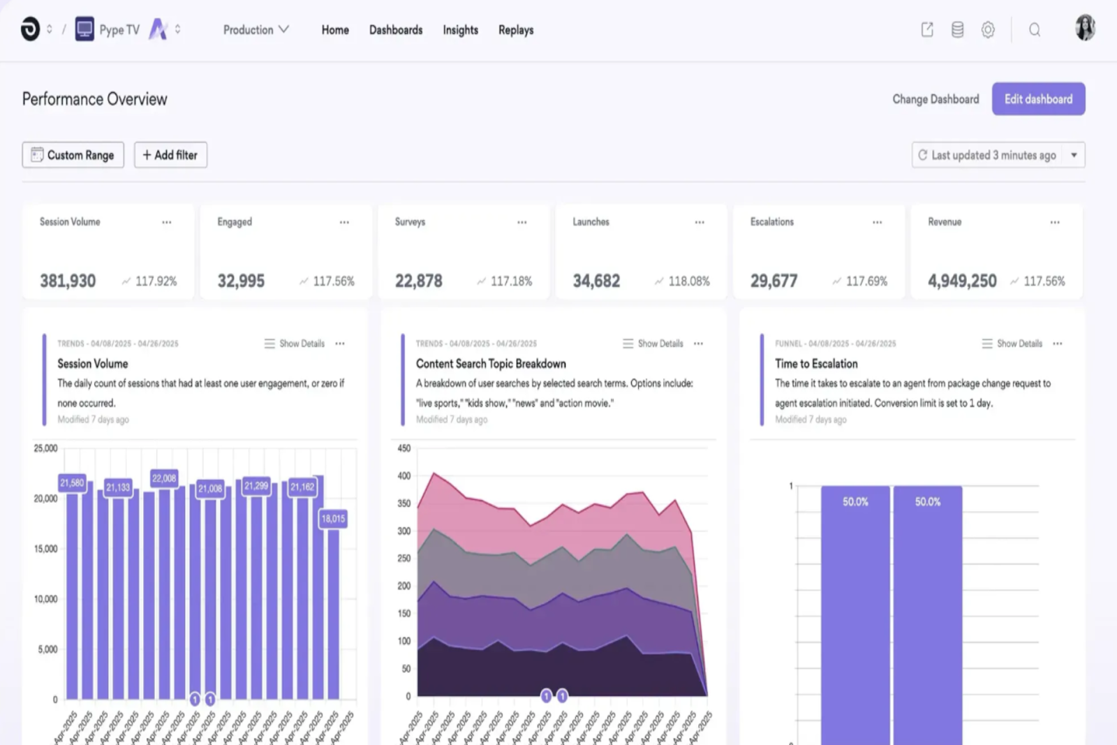 - AI-powered text analytics, speech analytics, and role-based dashboards