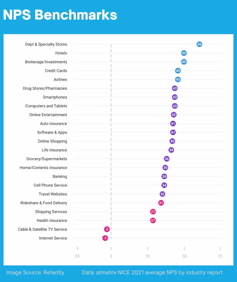 It's crucial to understand that NPS benchmarks can vary significantly across industries. For example: