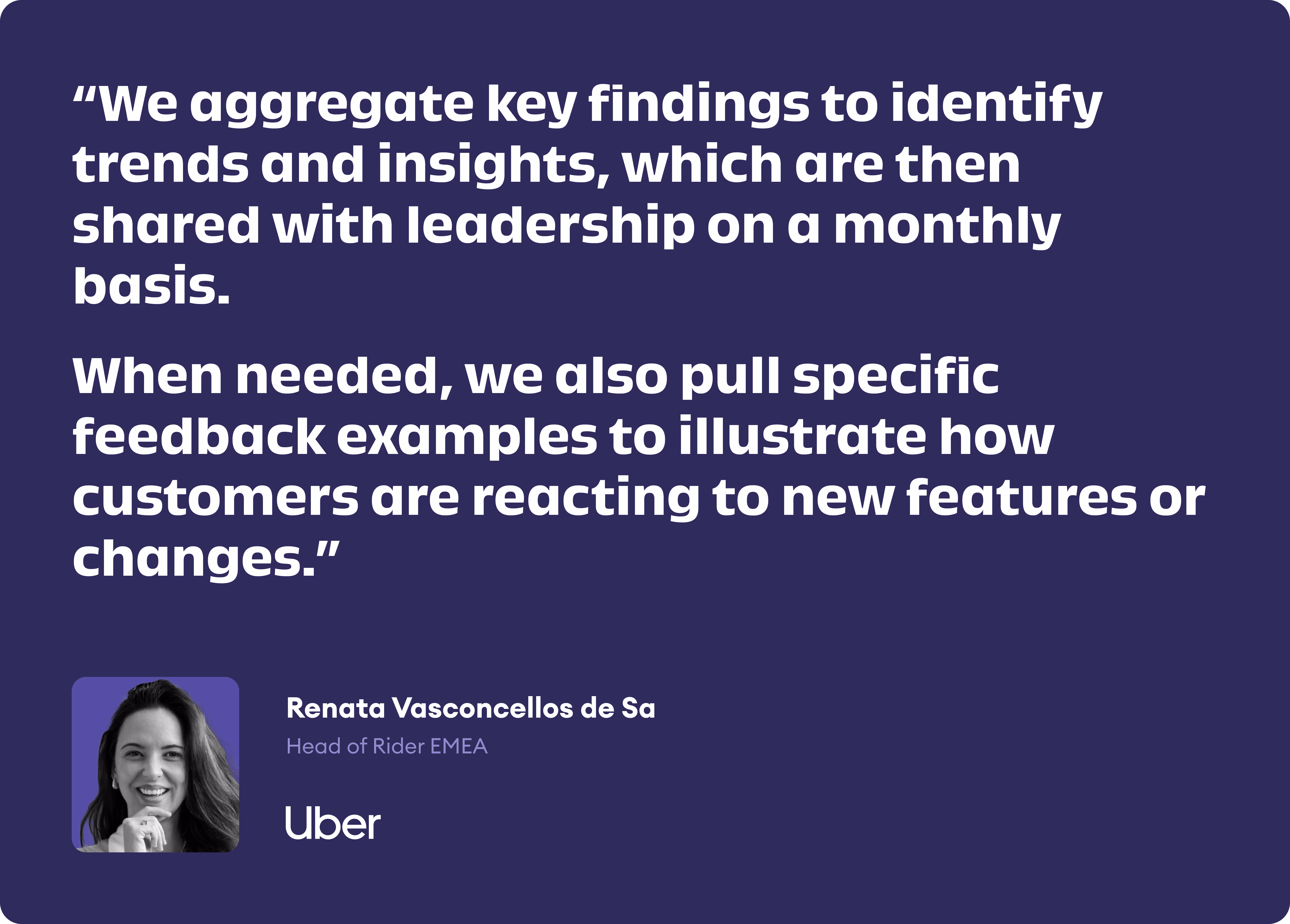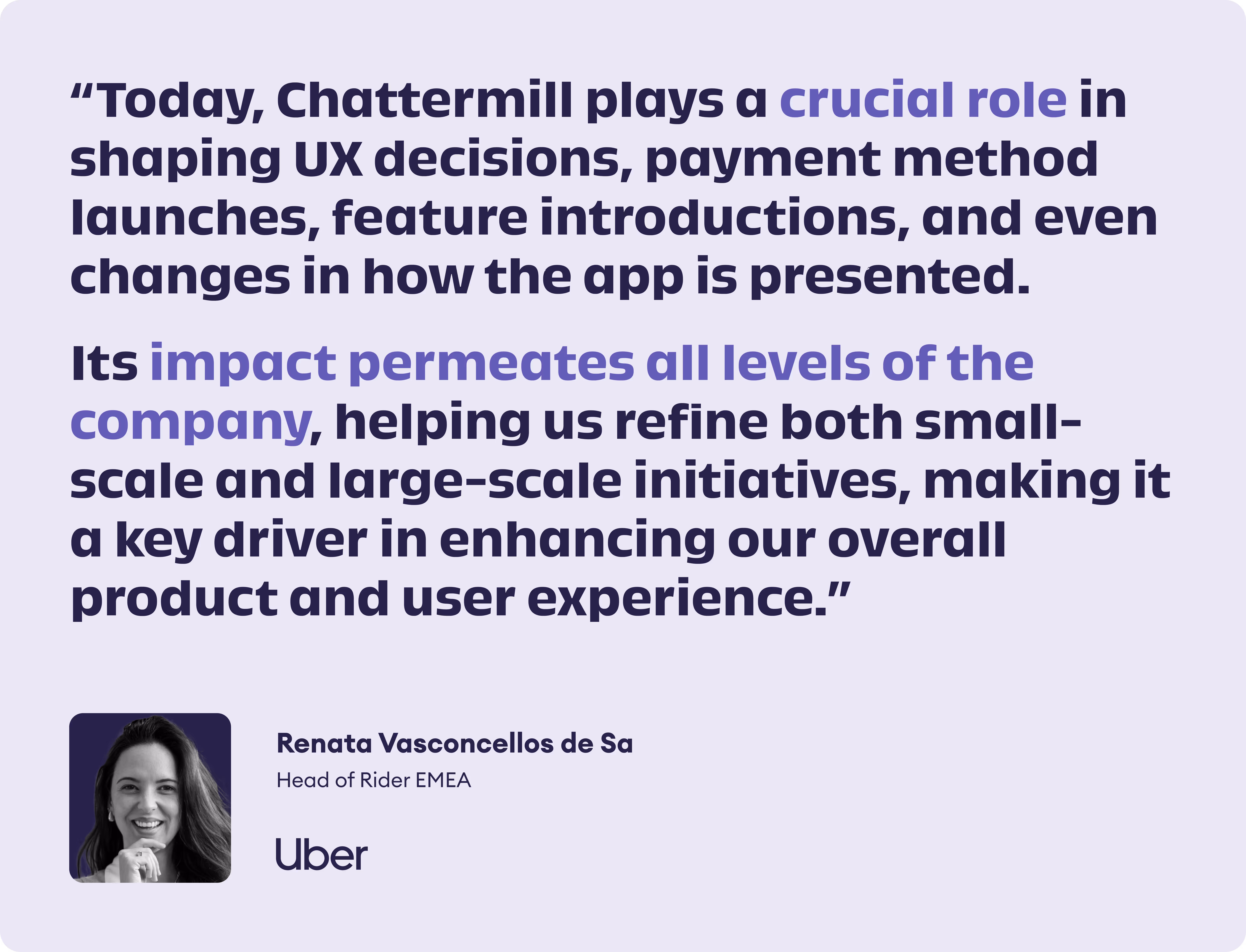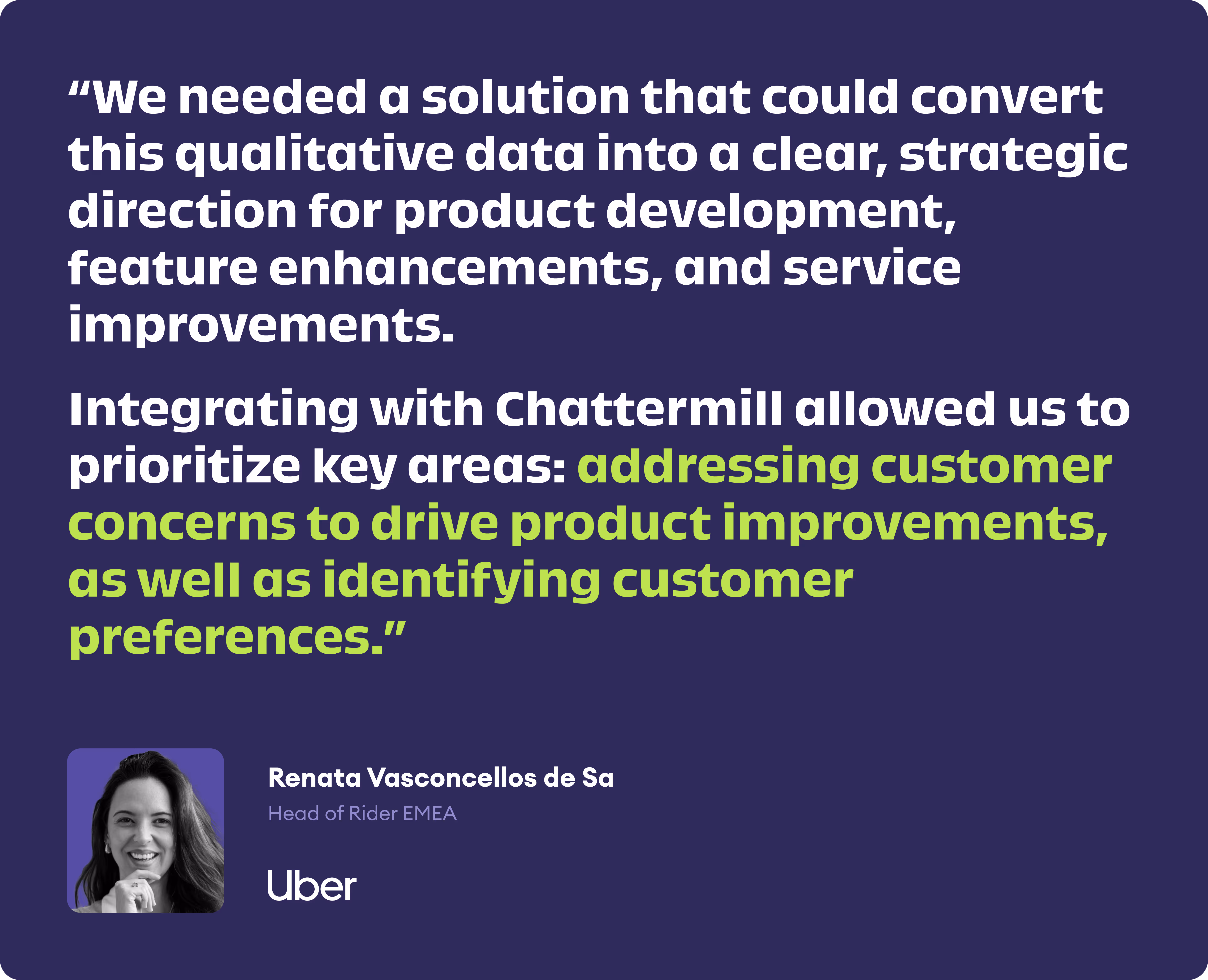 This level of depth and context helps Uber improve core parts of the rider experience, from trip quality and cancellations to pricing and app usability - areas where traditional internal data often lacks external perspective.