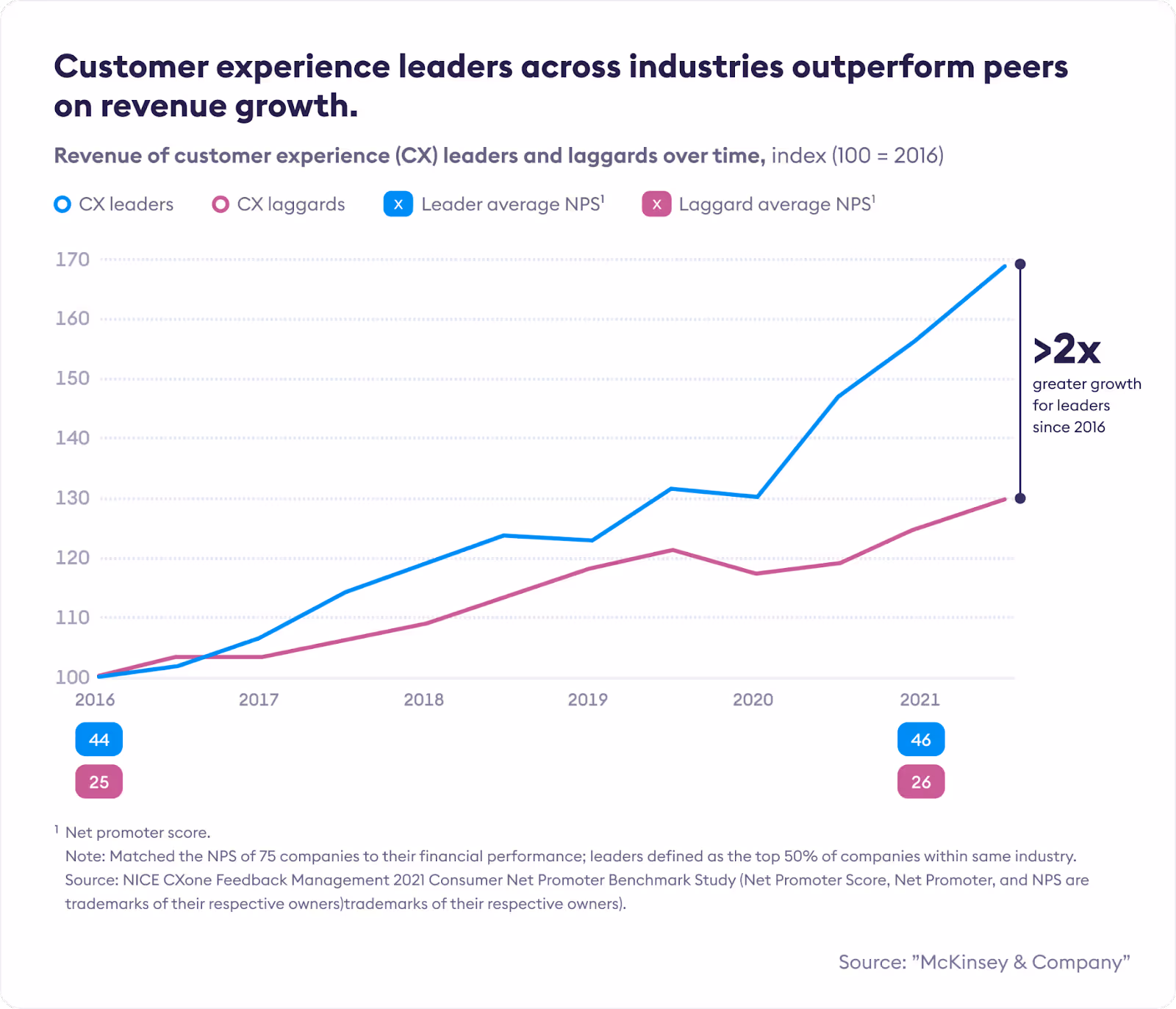 To pursue XLG, a company must treat its unique customer experience as its key competitive advantage. This means proactively investing in and consciously building a distinctive customer experience across the whole customer journey. That’s why McKinsey’s 2023 report on XLG estimates that companies pursuing XLG grow 2x faster and have higher profit margins than their peers who do not, other things being equal. Over the long term, this really adds up.