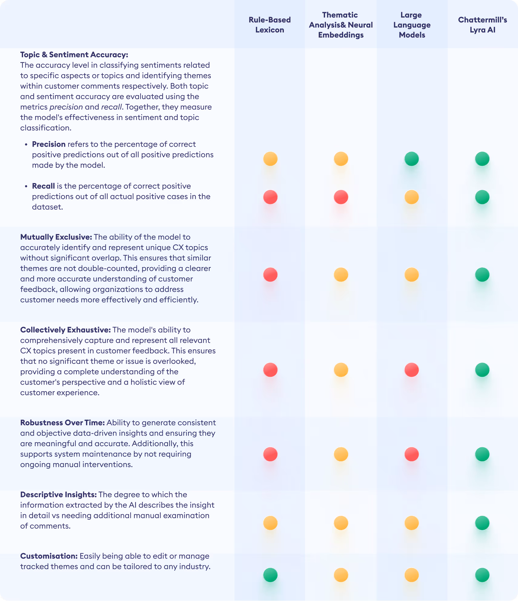 Take a look at our article, Why Lyra AI Comes Out on Top When Comparing AI Platforms for Text Analysis, for more information about how each AI model stands up to the challenge of analyzing customer experience feedback.