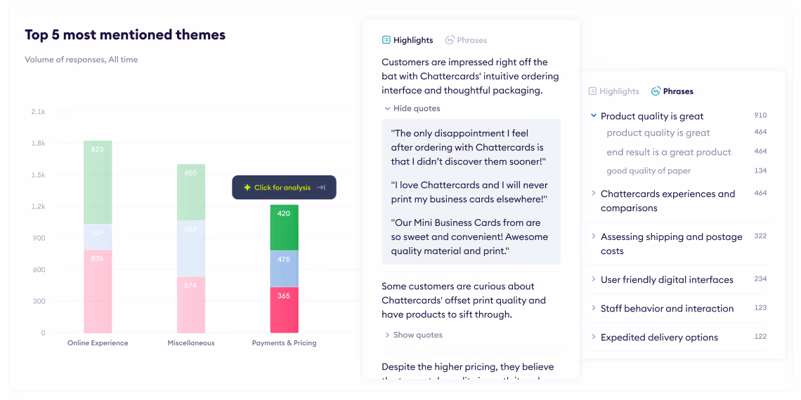 Mutually exclusive topics – Lyra ensures that similar themes are not double-counted, by providing a clearer and more accurate understanding of customer feedback.