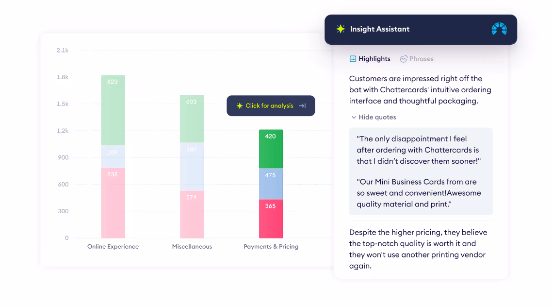 CoPilot is currently in beta testing and is expected to be released later this year. It means Lyra will provide one-to-one insights about CX Intelligence. It leverages Gen AI so CX professionals can ask a question in human language and get everything they need from their customer feedback data in seconds. It’s the next evolution of Insight Assistant.