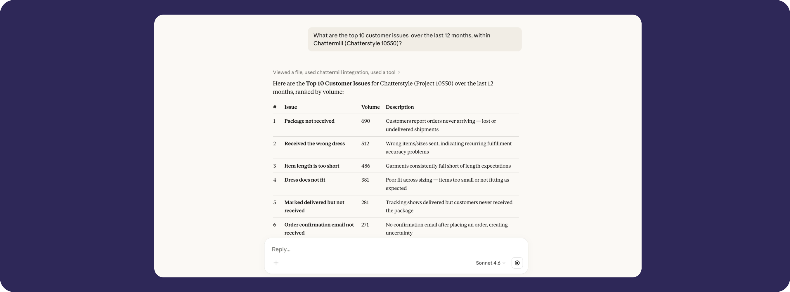 Bring Chattermill directly into your AI workflows to ground every output in real customer feedback.