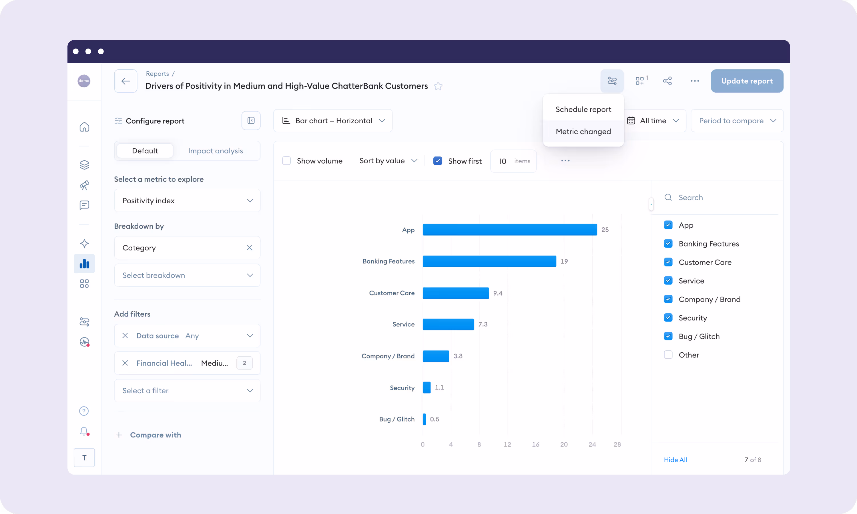 You can now create workflows (notifications, scheduled reports, or anomaly alerts) with one click from any point in the Chattermill platform.